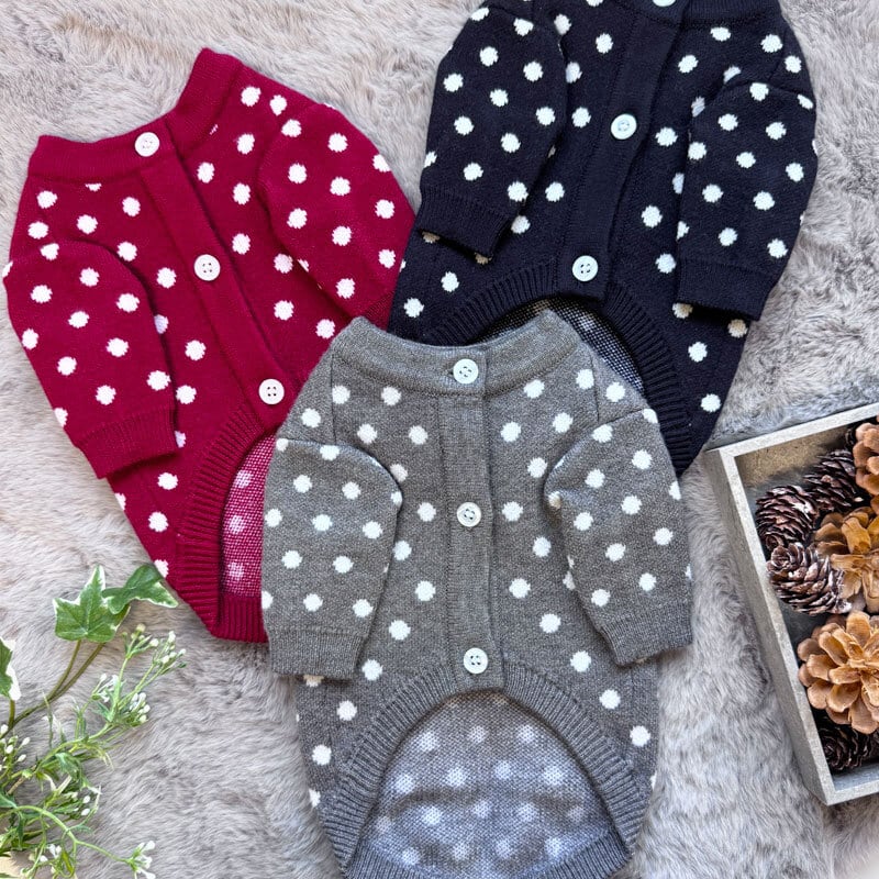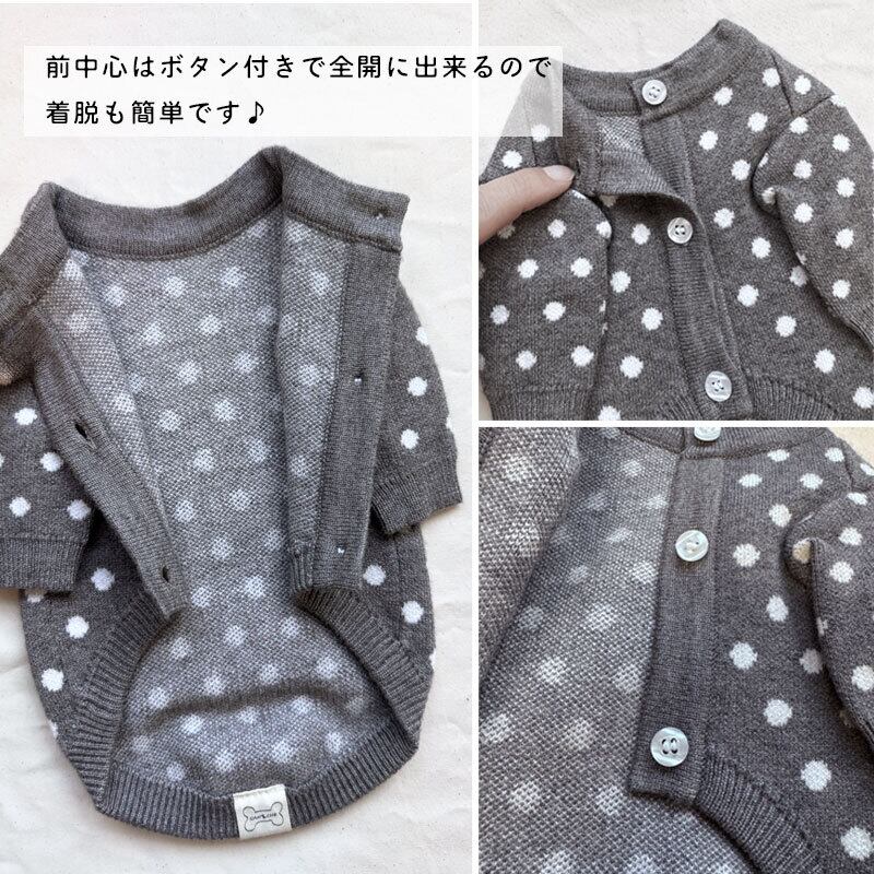 おしゃれ心をくすぐるドット柄に、まるで人間用のカーディガンをそのまま小さくした様な愛らしいデザインです♡