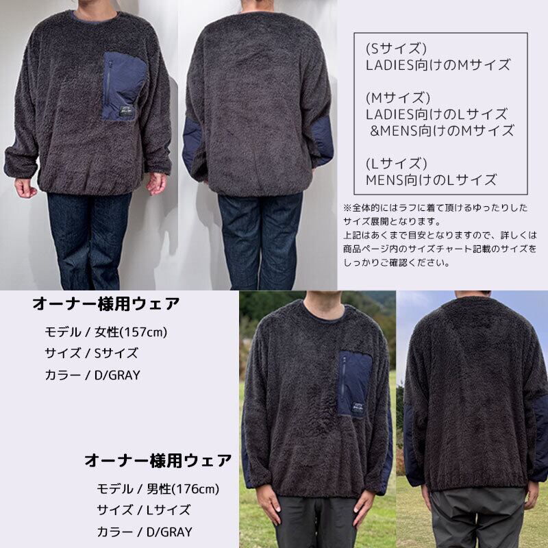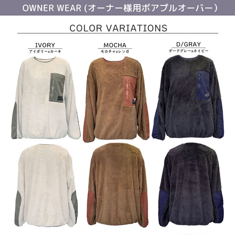 ふわふわのボアに、ワンちゃんにはぽっこりフードを、オーナー様にはスッキリしたクルーネックとパッチポケット付きで、愛犬とさりげないリンクコーデを楽しみたい方にもお勧めです♪