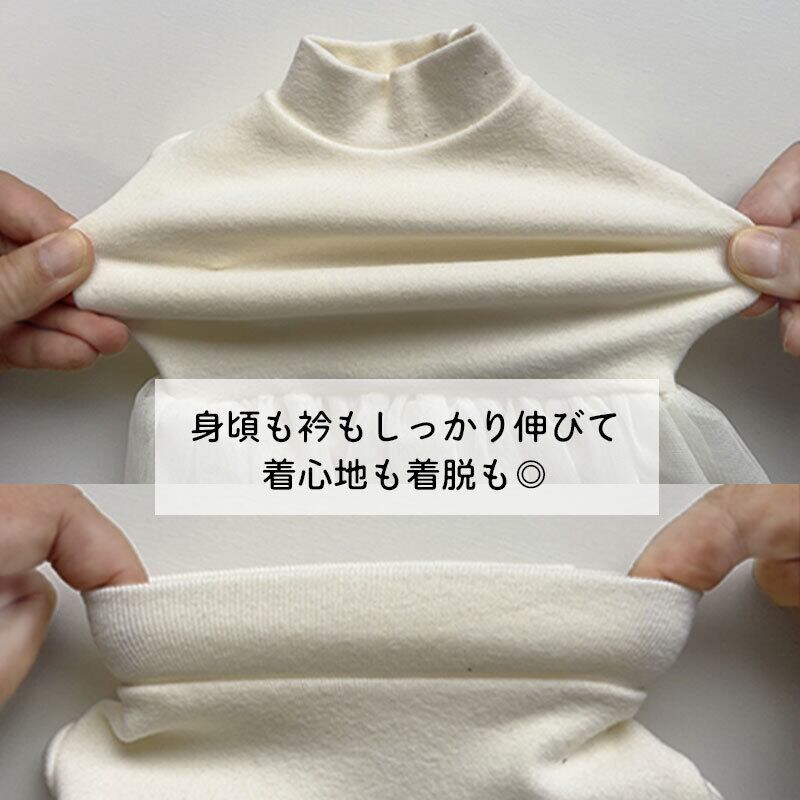 長すぎないちょうどいい高さのモックネックとお袖も付いて、元気なワンちゃんが動いても脱げにくいデザインです。