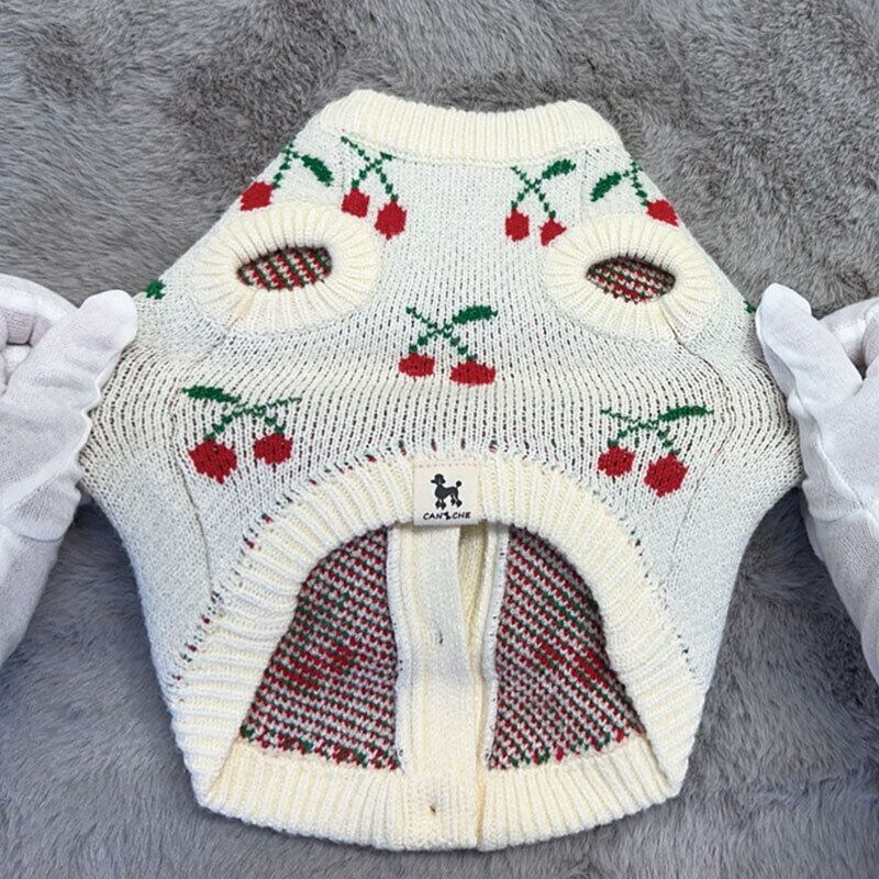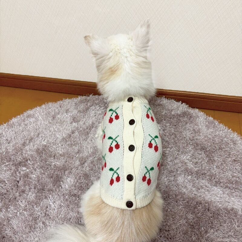 『愛犬の可愛さを120%引き出すチェリー柄犬服ニット』