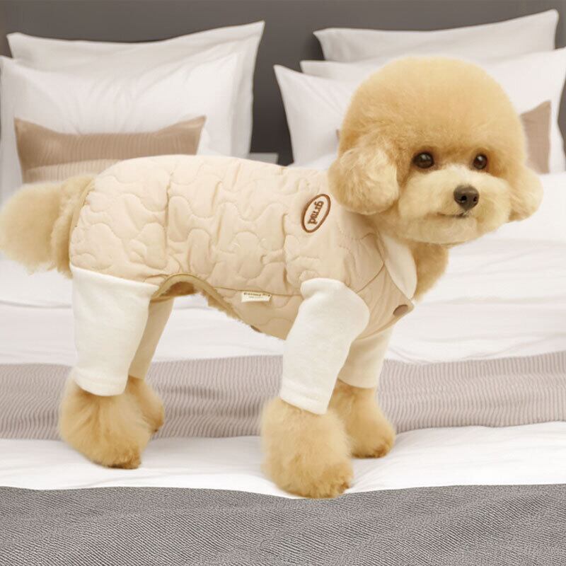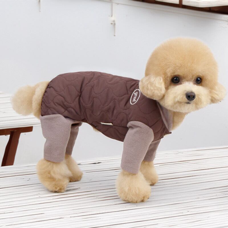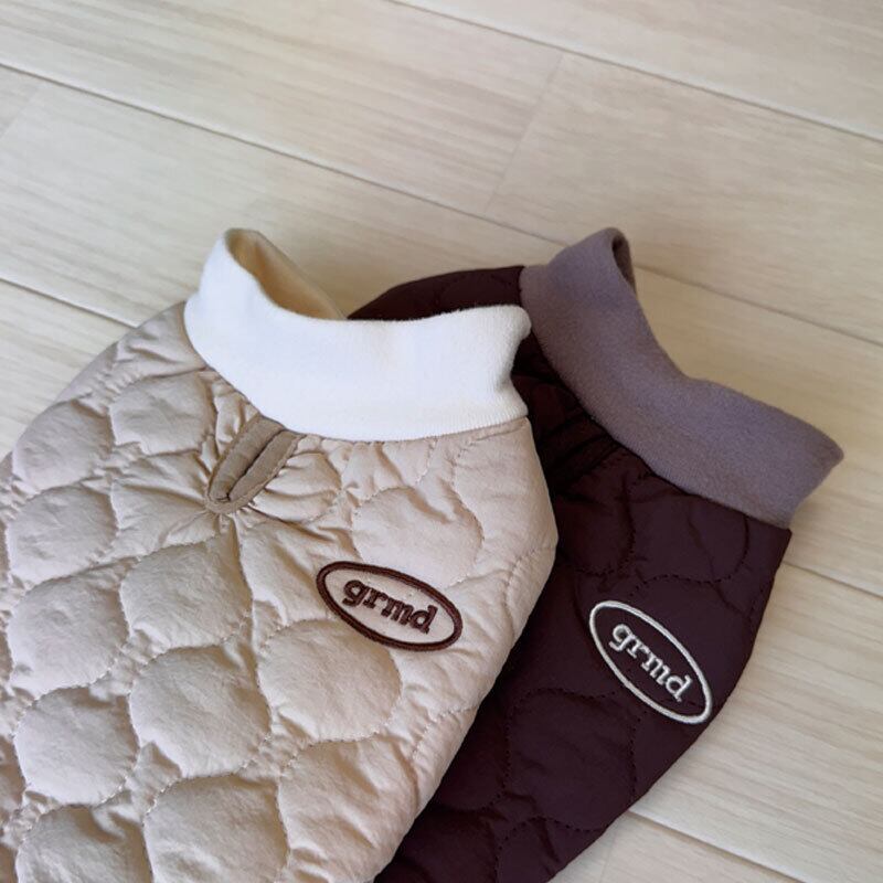 寒い季節のお出掛けにぴったりな、暖かい犬用キルティングジャケットです。