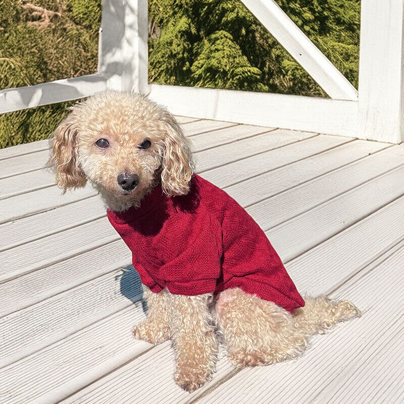 凹凸感のある柔らかなニットソー生地が愛犬をやさしく包み込み、見た目にもぬくもりを感じる一着です♡