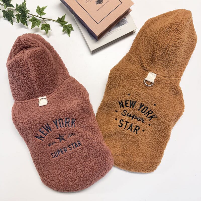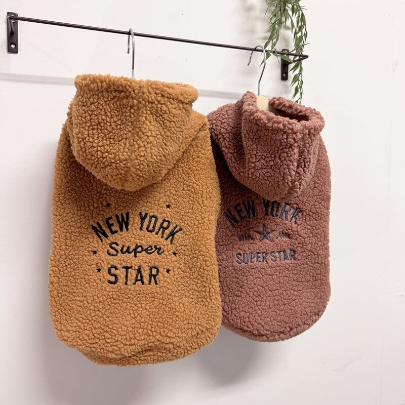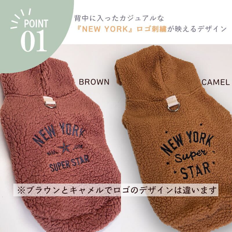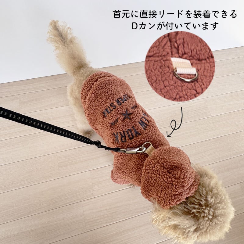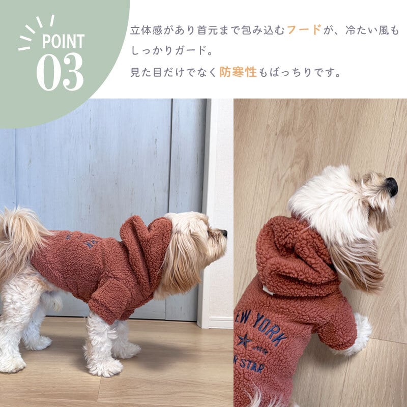 【犬服】NYロゴ刺繍 シープボアパーカー (CAMEL/BROWN) 353027
