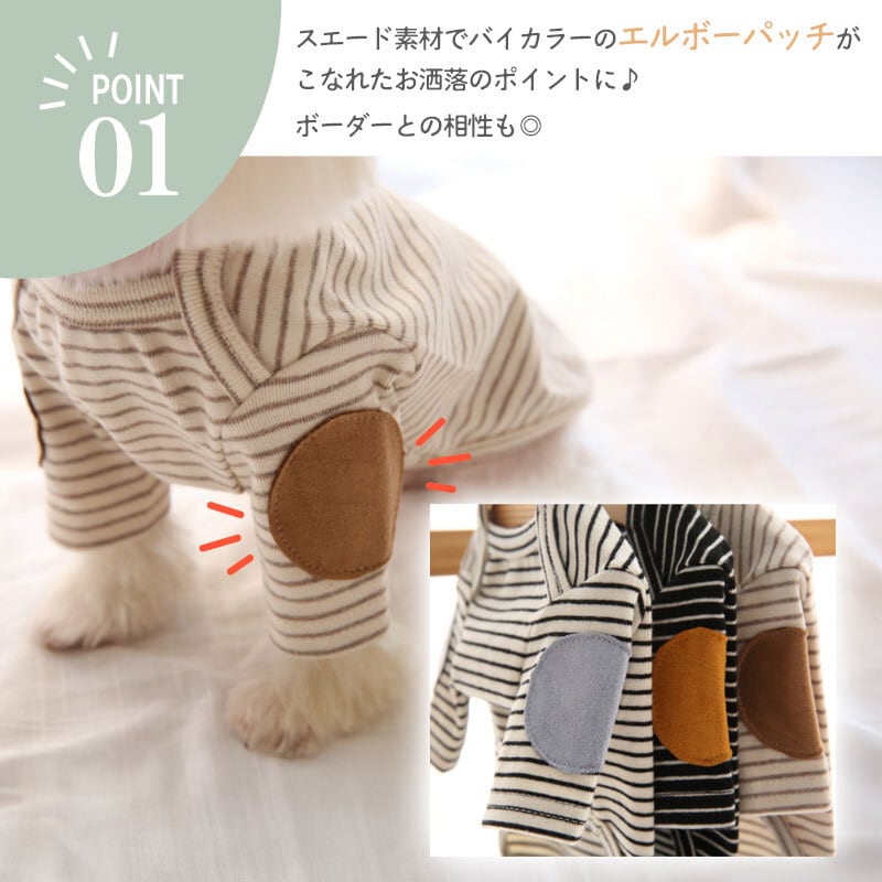 【送料無料】【犬服】肘パッチ付き ボーダーT 353031
