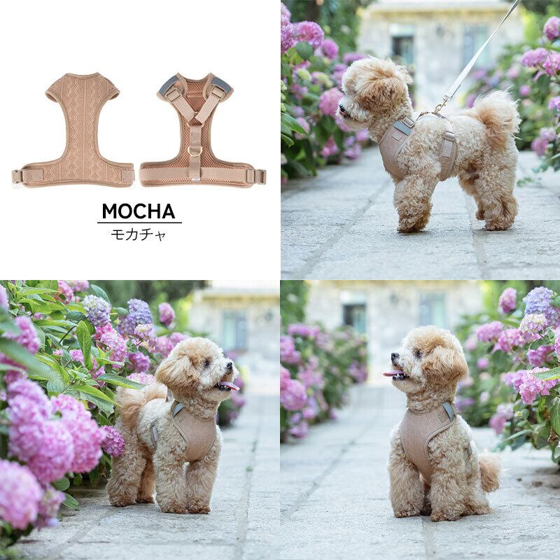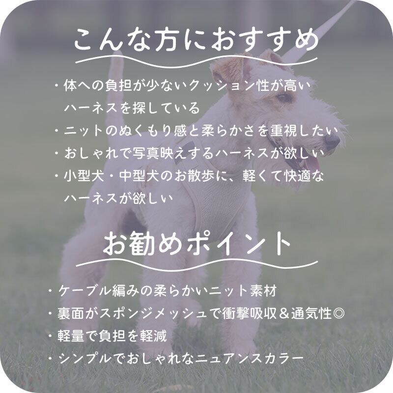 ケーブル編み ドッグハーネス 犬用 ハーネス ケーブルニット 胴輪 軽量 柔らか クッションメッシュ 散歩用 アイボリー モカ 小型犬 中型犬 355017