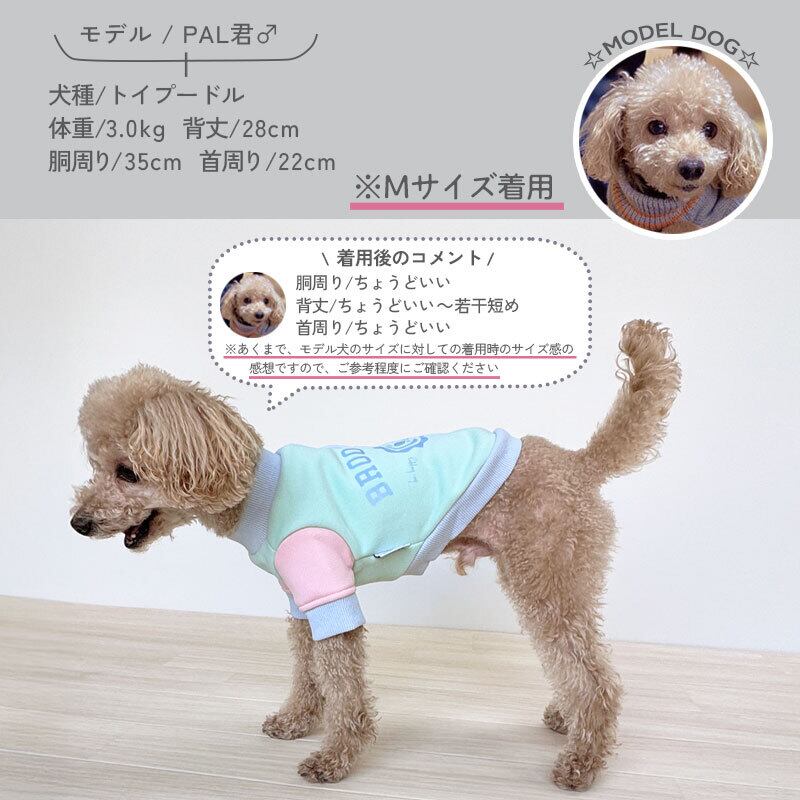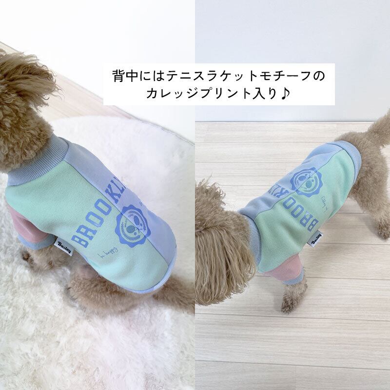 テニスモチーフのカレッジプリントが目を惹く、配色デザインのスポーティーなドッグスウェットです。