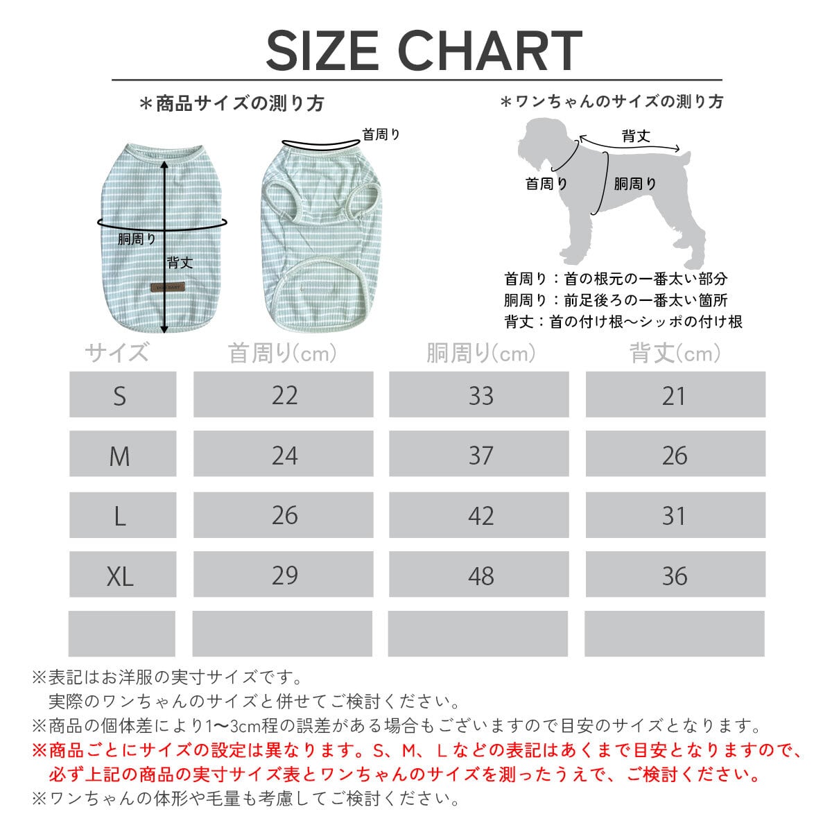詳細は商品画像ページのサイズ表でご確認下さい